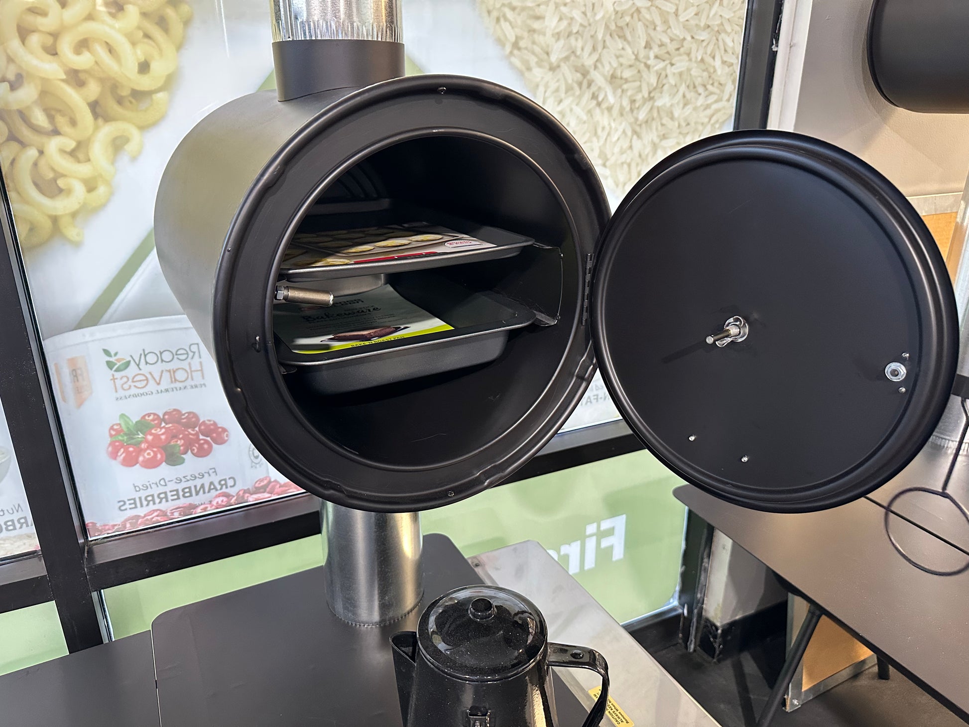 Our oven is specifically designed with a focus on superior craftsmanship, long-lasting performance, and user-friendly operation, just like our stoves. It seamlessly attaches to the stove pipe of your stove without requiring any additional support. The oven utilizes the heat from the stove pipe, which circulates around the oven chamber, ensuring even and efficient baking temperatures (with no direct contact between the smoke and food). You can easily regulate temperatures up to 500 degrees by controlling the burn rate of the stove. To accurately monitor the oven temperature, we employ a precision thermometer that measures the interior temperature of the oven, not just the food. The oven is equipped with a draw bar latch featuring a wire ring handle, similar to the stove, making it convenient to operate even when hot.