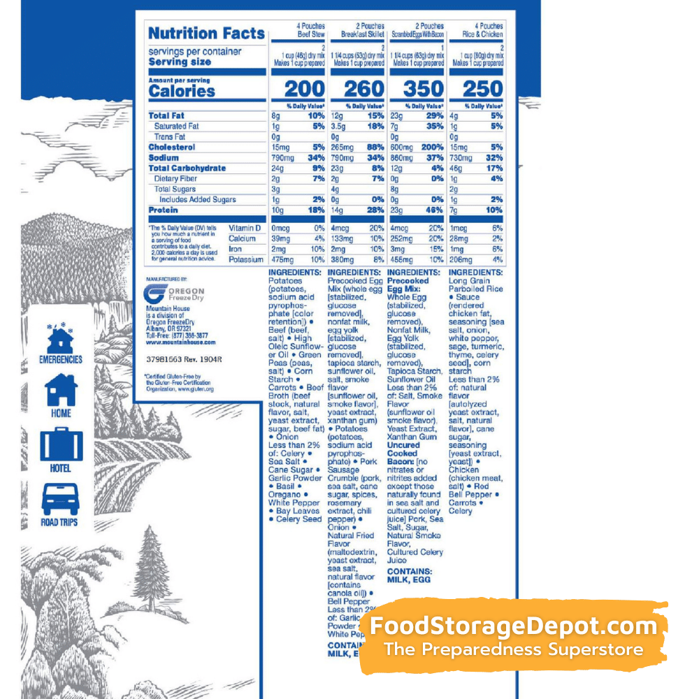 Each pouch contains comforting, delicious food, perfect for emergency food storage, survival, camping trips, RV expeditions, and so much more.
