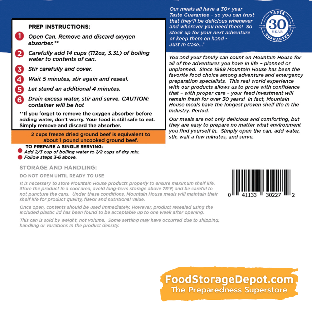 Backed by a 30-Year Taste Guarantee, you'll have peace of mind knowing Mountain House has you covered for any situation that comes your way.